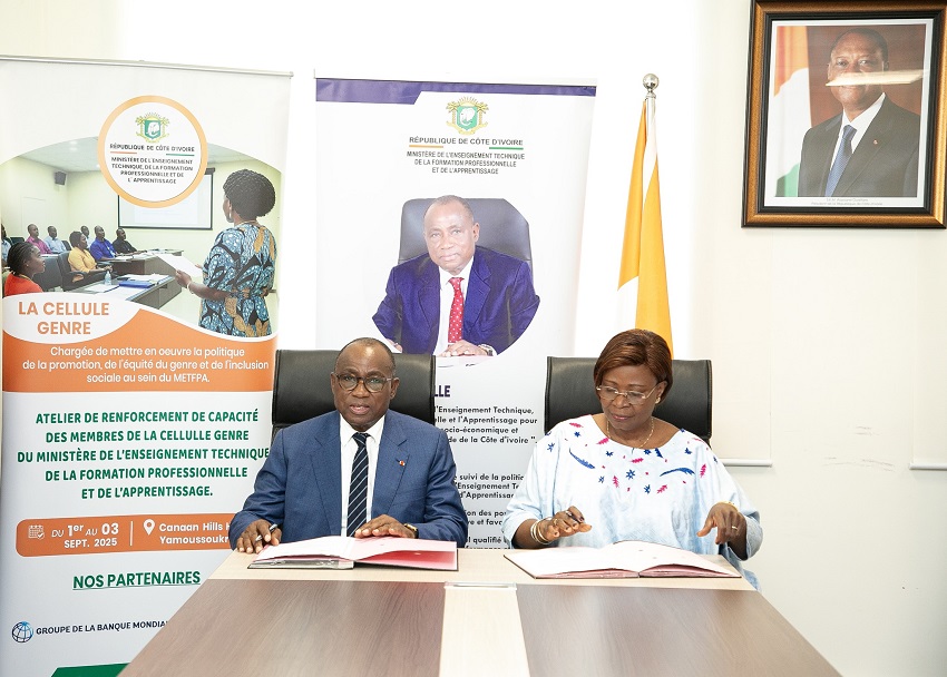 Le Ministère de l’Enseignement Technique, de la Formation Professionnelle et de l’Apprentissage (METFPA) et le Fonds des Nations Unies pour la Population (UNFPA) ont officialisé, ce lundi 10 novembre 2025, la Signature d’un Accord-Cadre de Partenariat au Cabinet du Ministre, situé au 7ᵉ étage de la Tour B au Plateau.